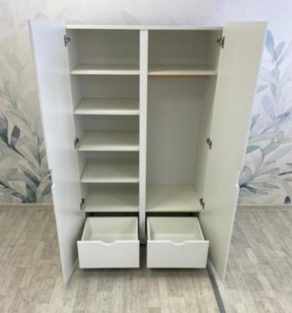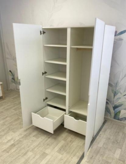 Шкаф Нео идеально впишется в детскую комнату благодаря классическому стилю и белому цвету. Удобная организация хранения одежды и игрушек. Внутри шкафа есть два выкатных ящика, штанга и пять вместительных полок. Материал корпуса - ЛДСП, фасады - МДФ. Доступен в двух вариантах: - NEO mini 1650*1000*480мм - NEO maxi 1850*1200*480мм