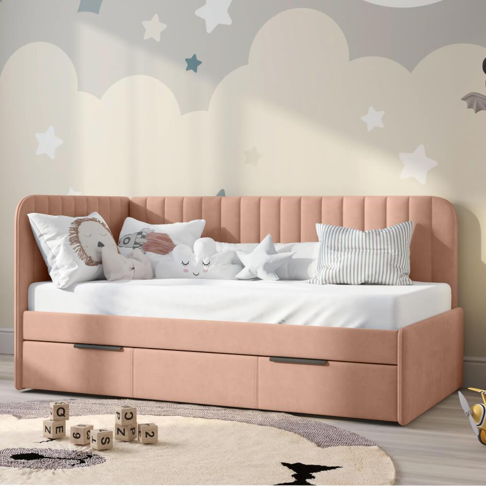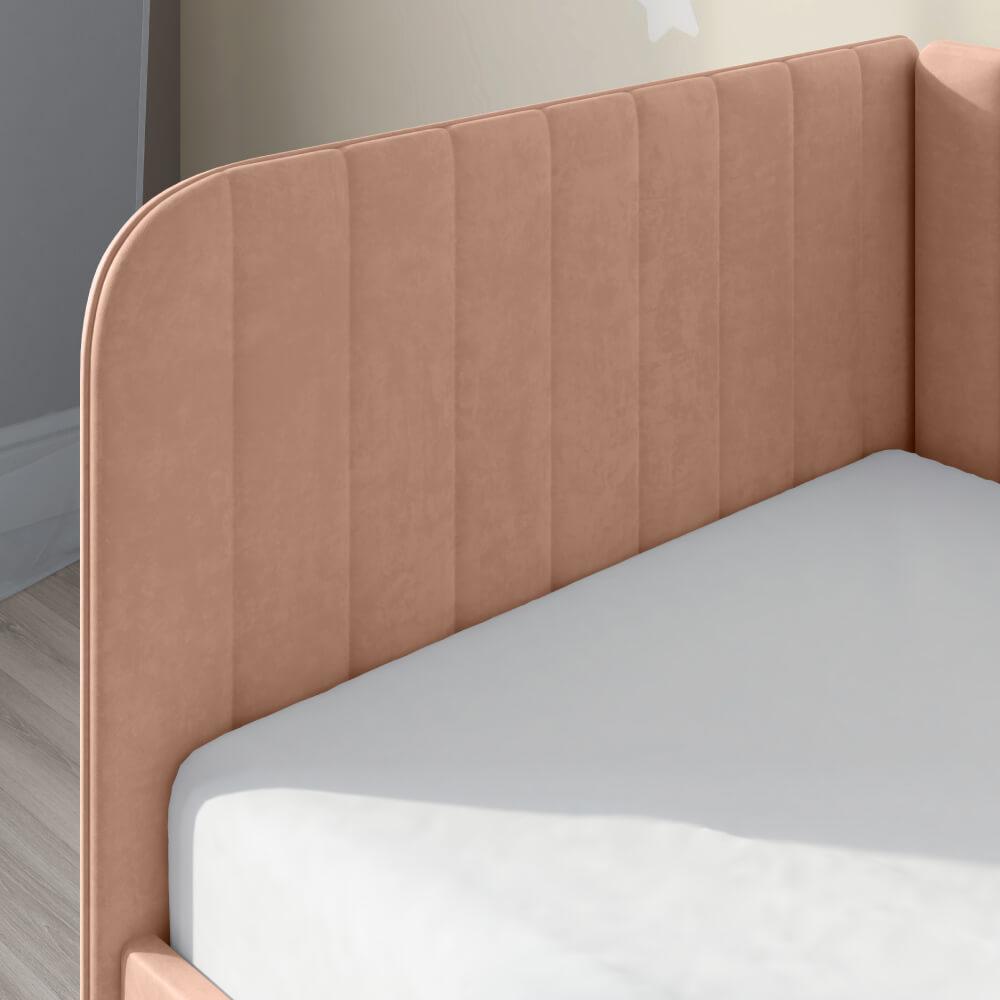 Детская диван-кровать ЭЛЛА станет отличным вариантом кровати для ребенка. Отлично подойдет как ребенку так и подростку. Закругленные "локти" и высокие спинка и локти дополнительно обезопасят Ваших непосед. Широкий размерный ряд и огромный выбор цветов и текстур создаст гармонию и уют в любой детской. Дополнительно Вы можете приобрести ночной бортик - который убережет Вашего ребенка от падений, матрас, декоративные подушки.